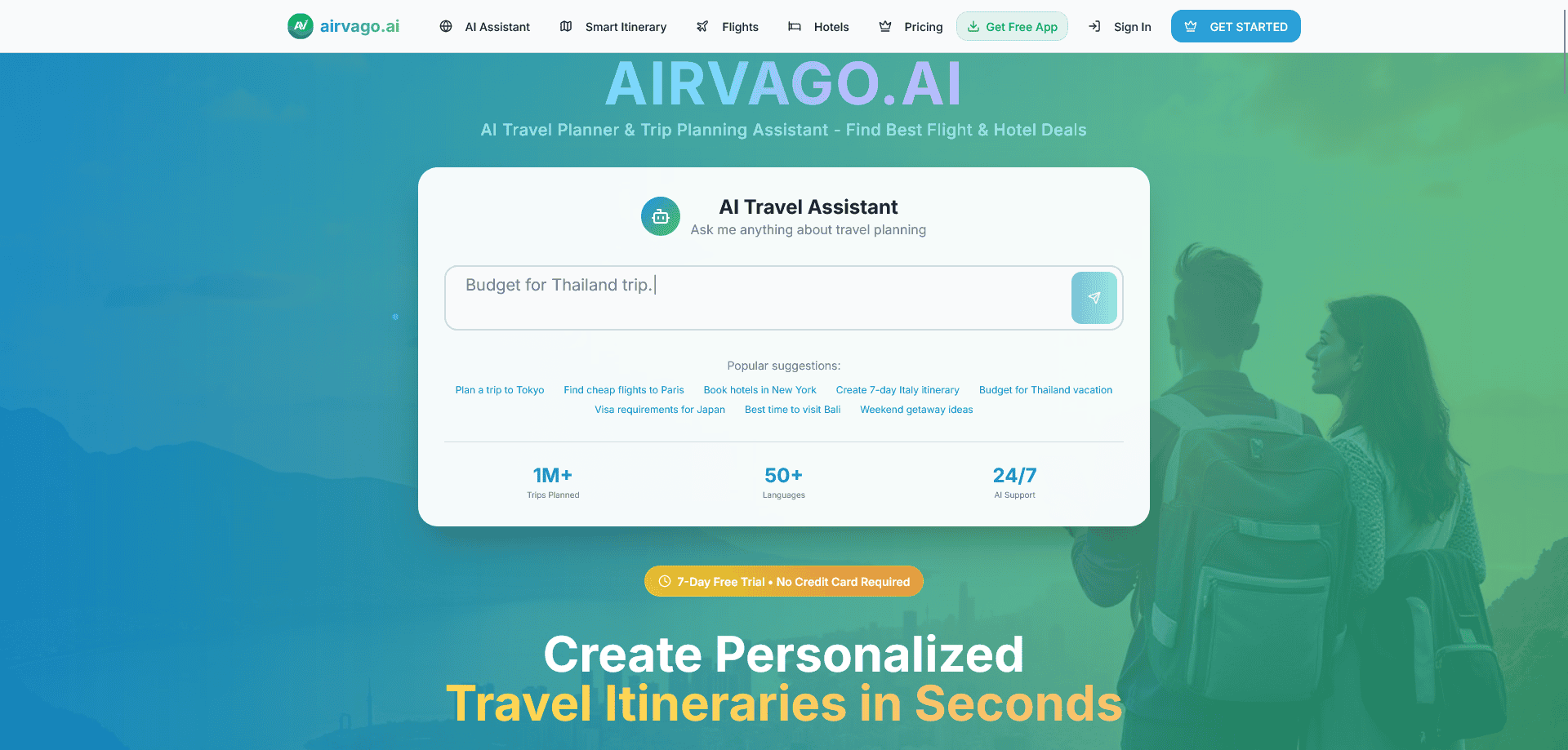 Airvago.ai analyzes your travel preferences, time, and location data to create personalized itineraries instantly. It adapts suggestions in real time, giving you flexible options for dining, sightseeing, and local experiences.