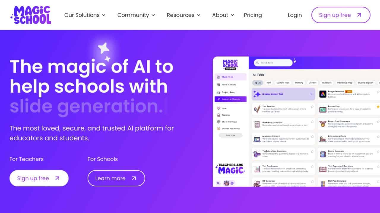MagicSchool – AI school workflow automation is a free AI education tool. No payment required to get started.