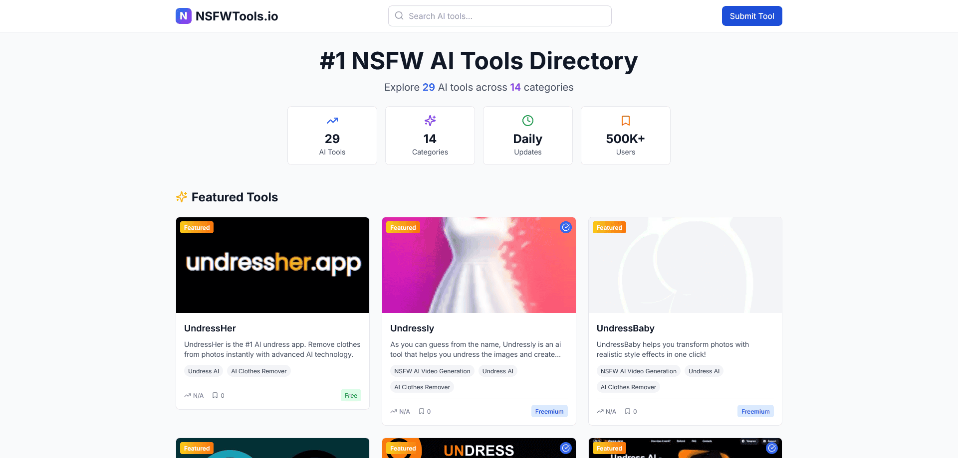 NSFWTools.io is built for people who want a reliable, structured, and up-to-date directory of NSFW AI solutions. By offering clear classifications, honest descriptions, and a clutter-free layout, it removes the frustration of navigating scattered or misleading sources online. Whether you’re a creator looking for editing tools, a developer researching AI technologies, or an industry professional exploring new NSFW utilities, NSFWTools.io gives you a dependable starting point. With its focus on accuracy and usability, the platform continues to grow into a trusted hub where users can discover the right tools quickly and confidently.