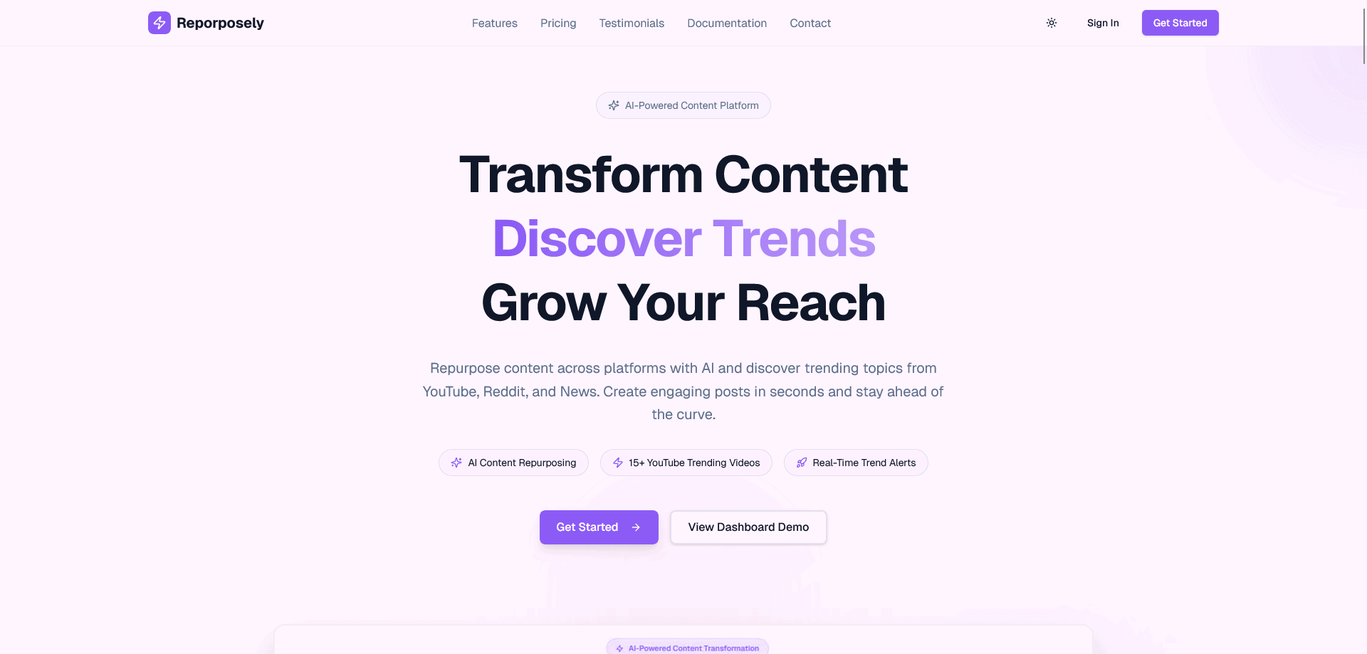 RepurposeAI is an all-in-one AI content intelligence platform that transforms how creators and agencies approach social media. Instead of spending 10+ hours weekly manually repurposing content across platforms, RepurposeAI does it in 30 seconds while providing competitive intelligence and performance predictions.