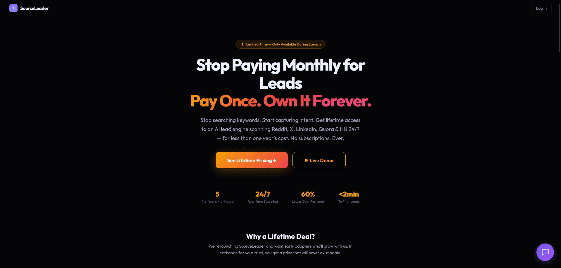 Whether you’re a founder, marketer, or agency, SourceLeader turns scattered online conversations into a steady stream of qualified leads—automatically.