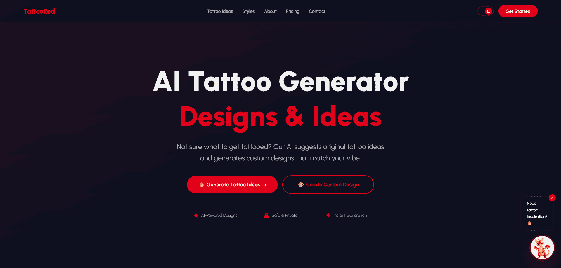 What sets TattooRed apart is our dual approach to creativity: use our direct generator for instant results, or chat with Red, our friendly AI dragon assistant who guides you through the creative process with personalized questions and suggestions. With thousands of tattoo ideas already in our gallery at tattoored.com/tattoo-ideas, plus unlimited generation capabilities, you’ll never run out of inspiration.