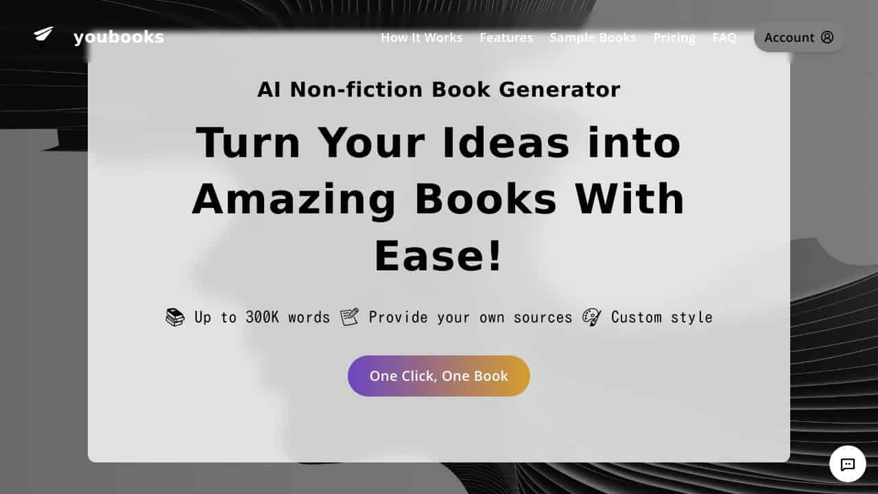 Youbooks harnesses AI technology to help users convert their ideas into book form. By inputting prompts or outlines, the system generates content that reflects your style and vision.